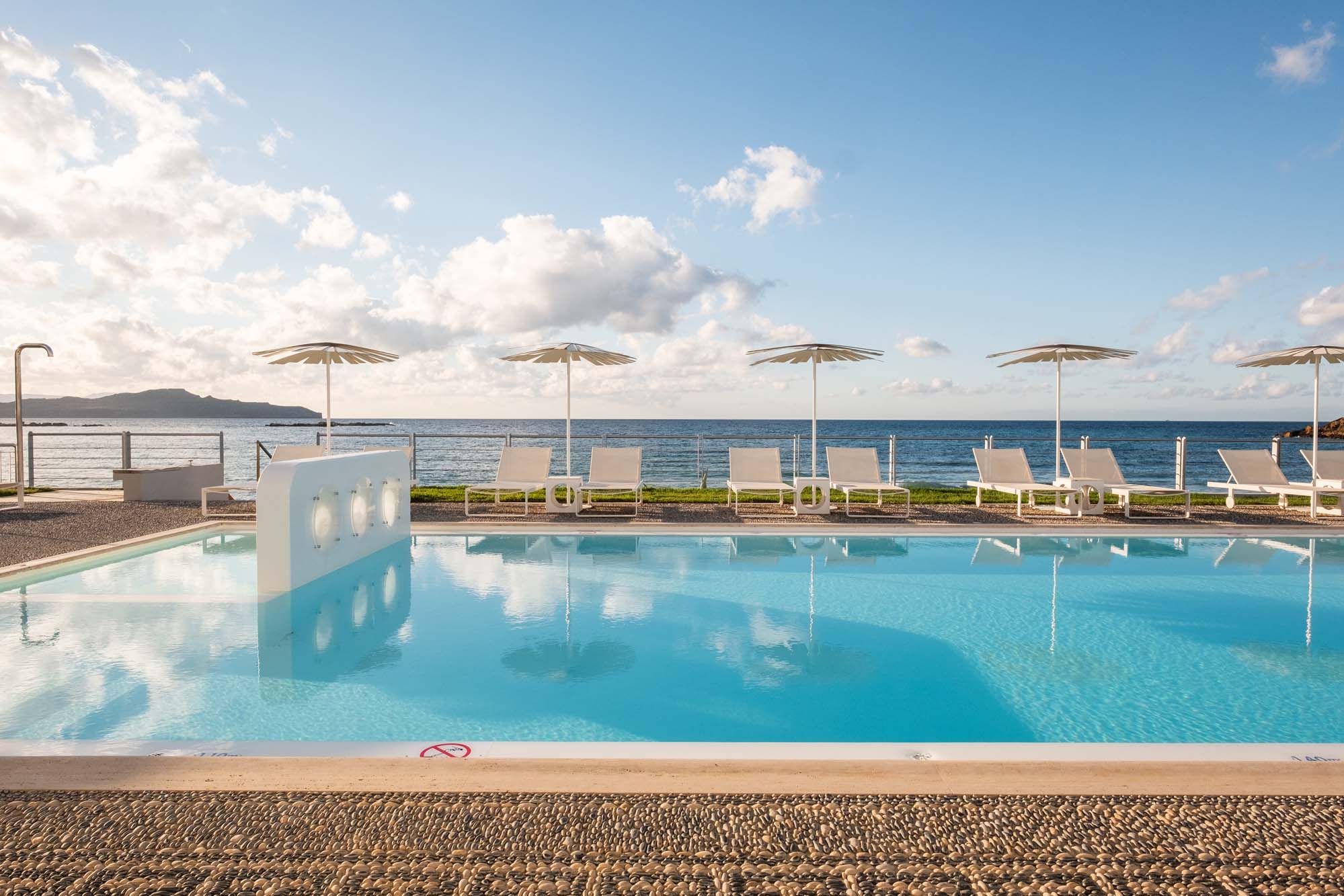 At the heart of the hotel is a gorgeous dining terrace with panoramic sea views. This is the perfect spot to start your day. Ammos’ a la carte breakfast - a (highly recommended) optional extra - menu includes fresh pastries, cakes, exotic breads and vegan treats from Nikos’ bakery Red Jane in Chania, standards like cereal and toast, a bottomless pit of filter coffee, and Cretan specialities such as rizogalo (creamy rice pudding with cinnamon) and kalitsounia, made with soft mithizra goats cheese and crispy filo pastry.