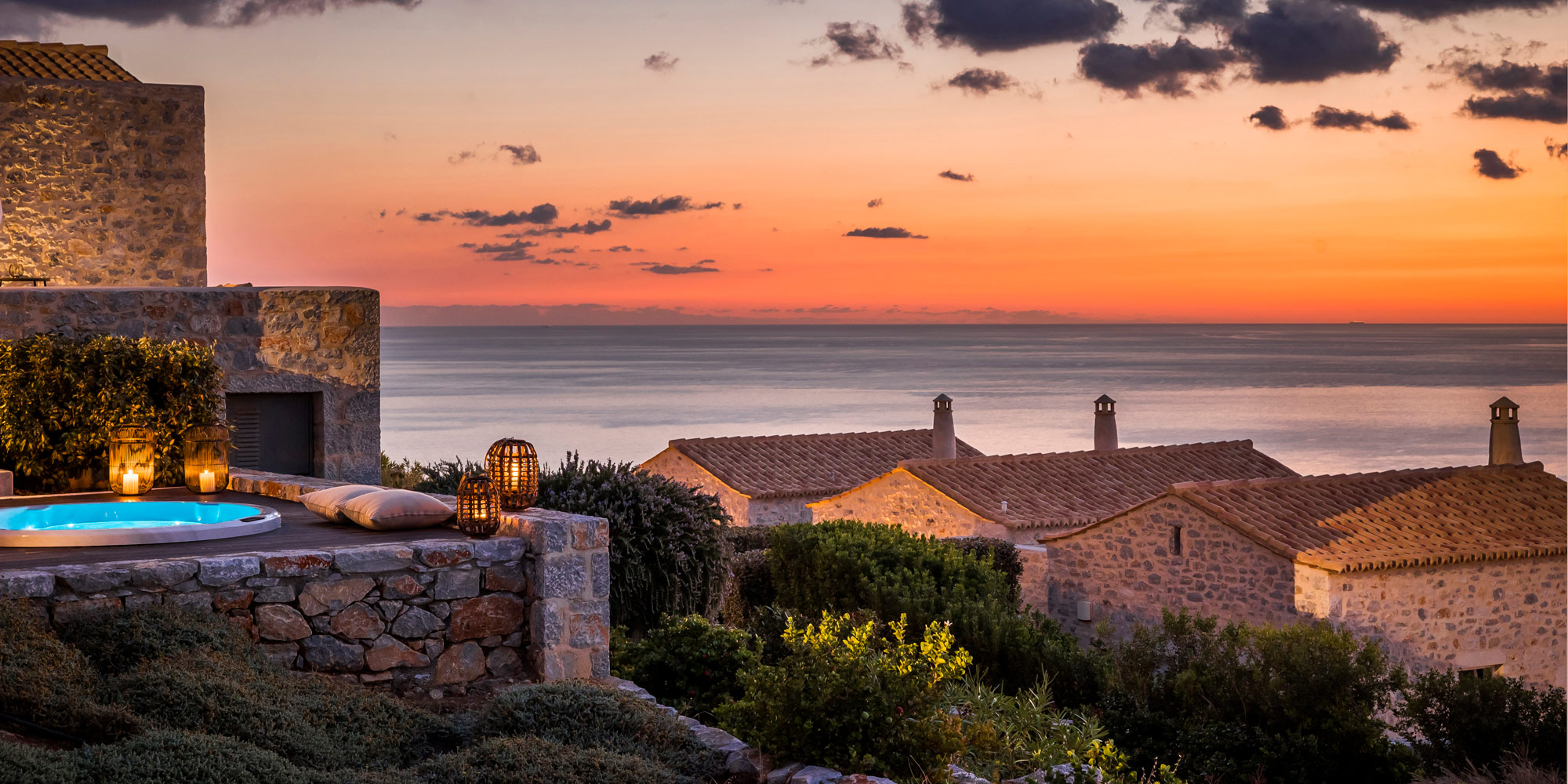 - A spectacular setting on the Mani Peninsula, with uninterrupted west-facing ocean views: a perfect spot for sunset aperitifs