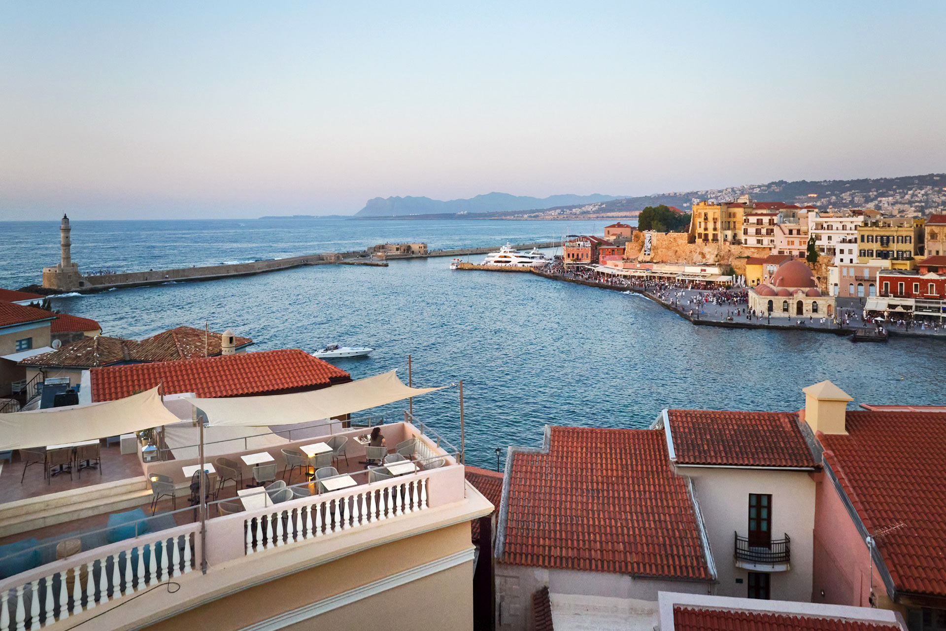For a really romantic approach – fly into Athens and then take the overnight ferry from Piraeus to Chania-Souda port (10km from hotel).