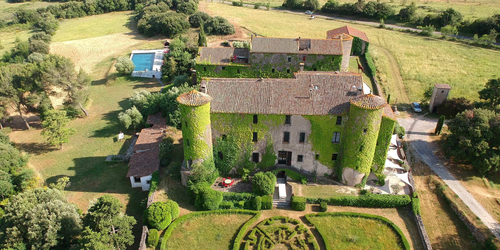 But there are plenty of 21st-century features to enjoy too: a large infinity pool and sun terrace with panoramic views across the lush valley, tennis courts, an onsite restaurant as well as fully-fitted kitchens in all the rooms. The décor leans towards the comfortable and sympathetic – roomy sofas and armchairs, lots of exposed brickwork, wooden beams and flooring, as well as cavernous open fireplaces and wrought-iron bannisters. All of the rooms also have private terraces.
