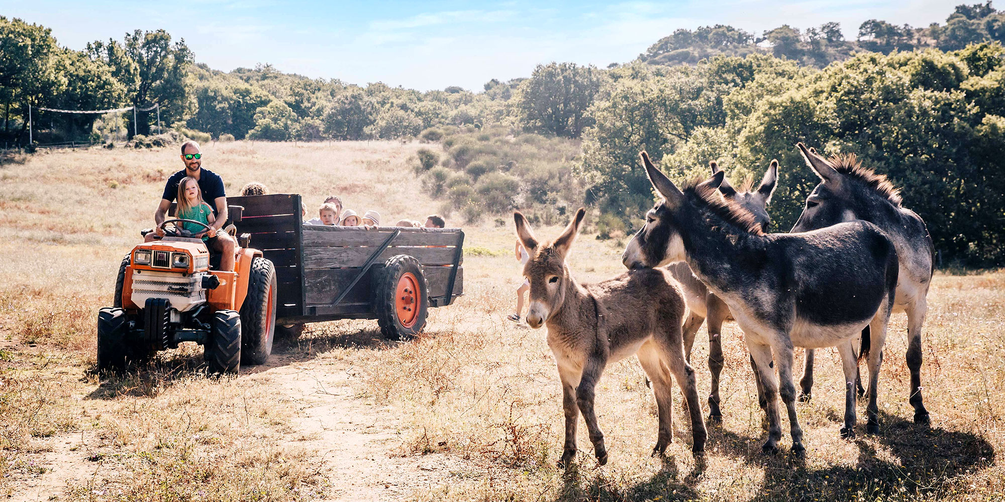 - Petting farm with sheep, goats, pigs, chickens, donkeys, horses and rabbits. Kids are invited to help feed the animals and collect the hens' eggs