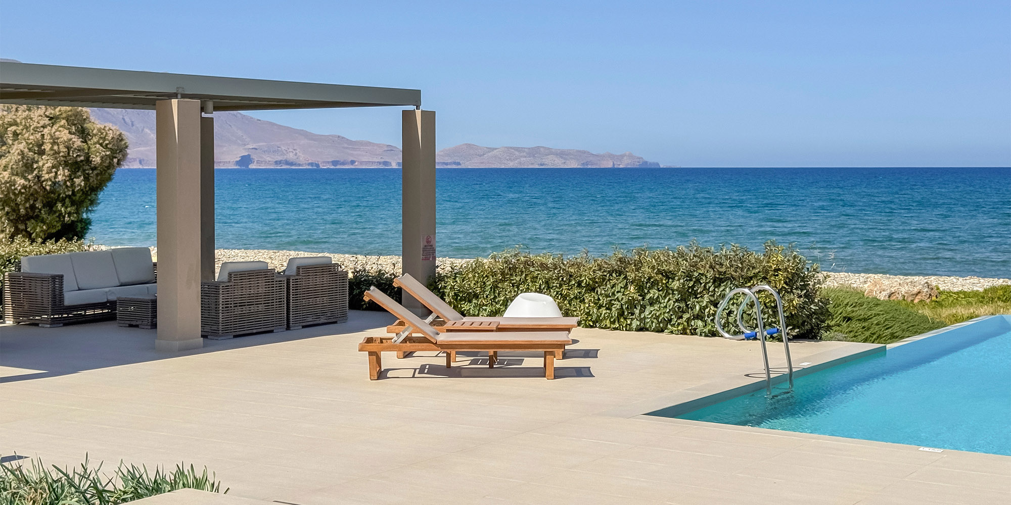 The villas are set on Korfalonas beach, a short drive from the town of Kissamos on Crete’s northwest coast.