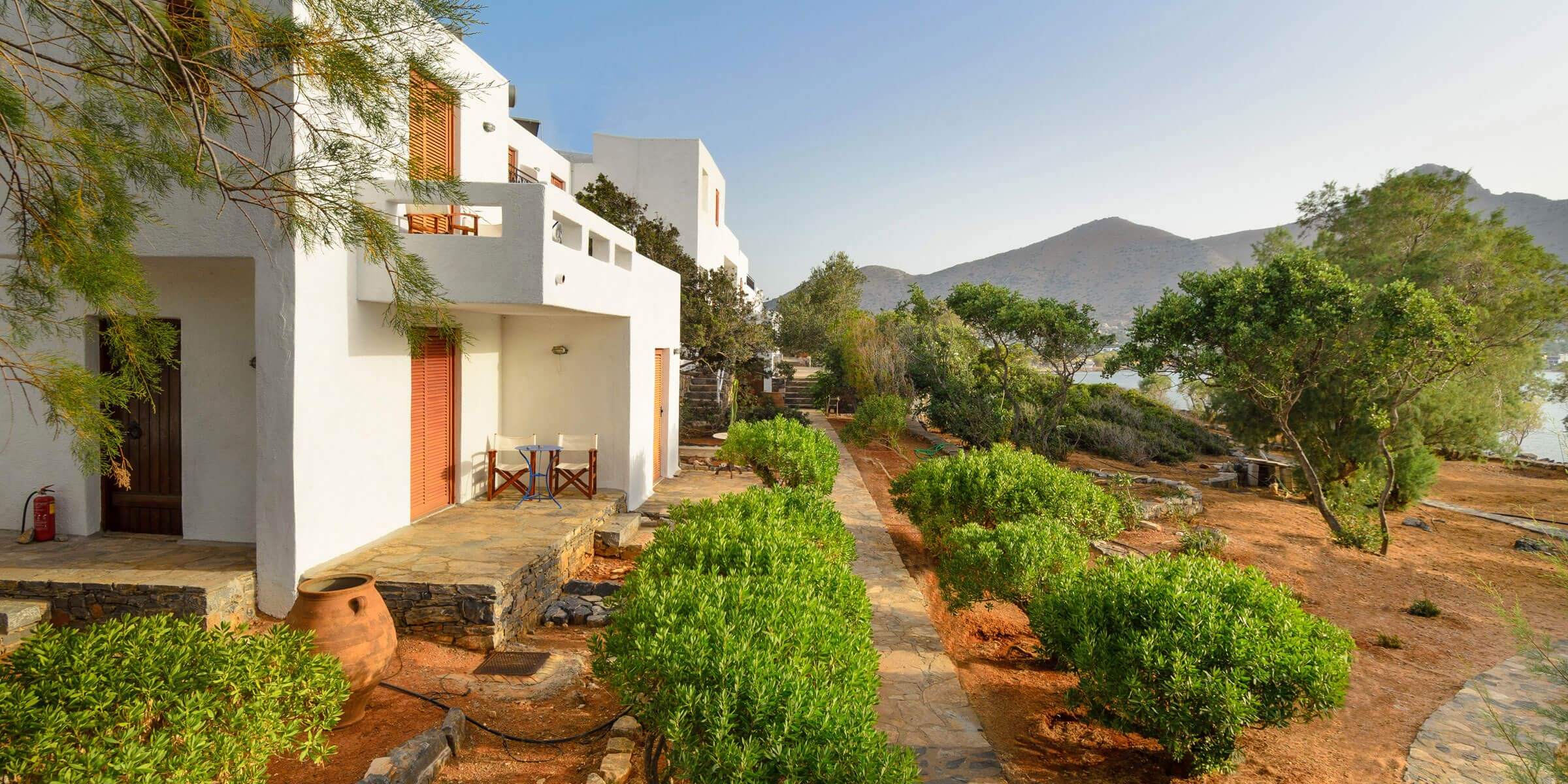 Elounda Island Villas are 1km from Elounda town in the east of the Greek island of Crete. They lie on a tiny island attached by a causeway to the main part of Crete,