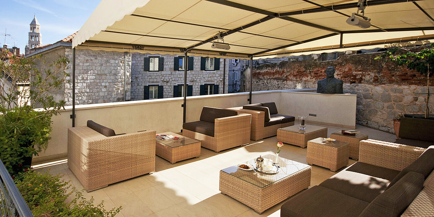 The hotel is discreetly located (ie. at first, elusive to find!) on a narrow side street in the heart of Split’s pedestrian-only old town, on the Dalmatian coast of Croatia.