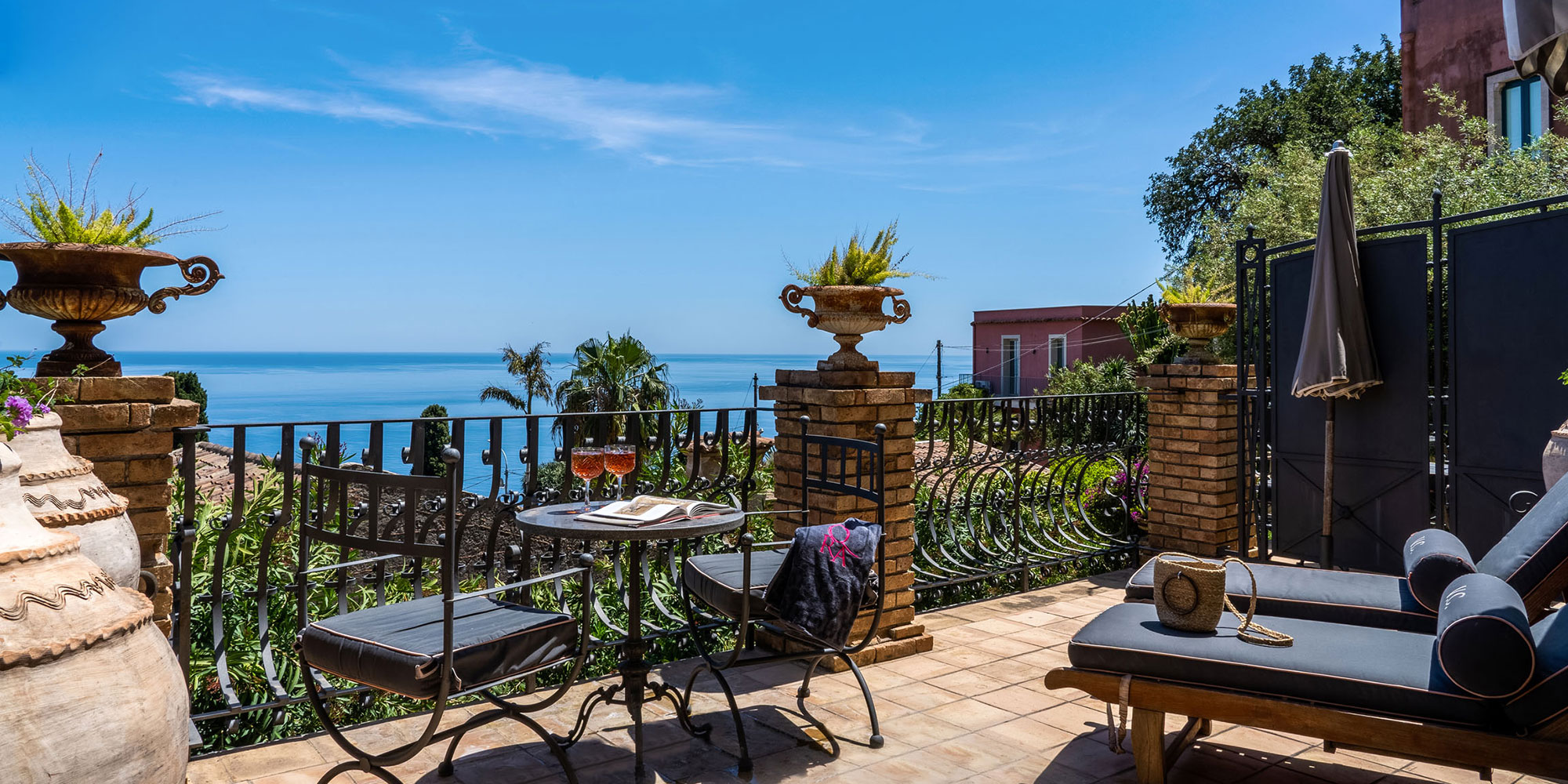 Some consider Villa Carlotta's best attribute to be the roof terrace, with its wonderful panoramic views of Mt Etna and the Ionian Sea as far as Calabria. It’s a spectacular place to start the day, and is truly romantic at night when candlelit and hung with Indian star lights.