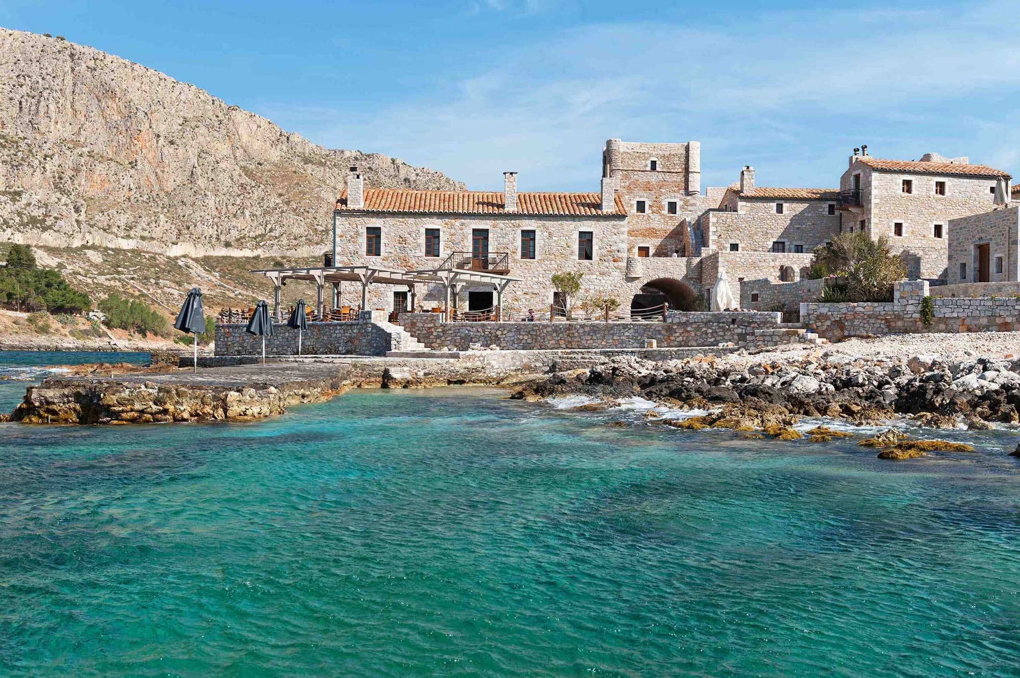 You enter through a stone archway, and find a world of peace and refinement, combining old-fashioned charm with modern comforts. The vaulted wine store serves as reception, and terraces on various levels give access to the 22 rooms, all furnished with antiques. Out front, you can sunbathe on or swim from the jetty; there's also a sparkling turquoise pool. Kyrimai makes a great base for exploring the region's medieval tower houses, Byzantine churches, rugged mountains and spectacular coast. It stays open all year, and must be lovely in winter, too, with log fires blazing as waves crash against the outer walls, and spray from the sea reaches the upper-floor windows.
