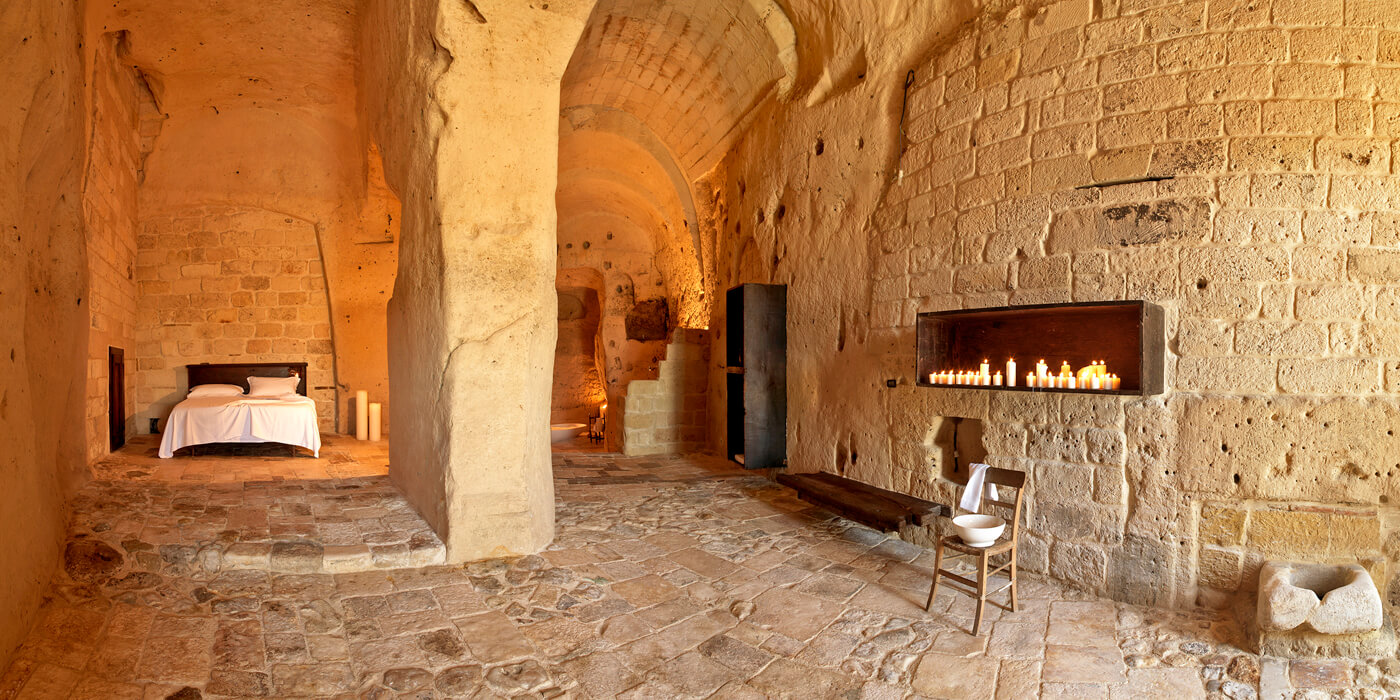Le Grotte della Civita is set in the ancient cave network of the Sassi de Matera, which is the old part of the town of Matera. It’s in Basilicata, southern Italy, 255km southeast of Naples and 65km from Bari.