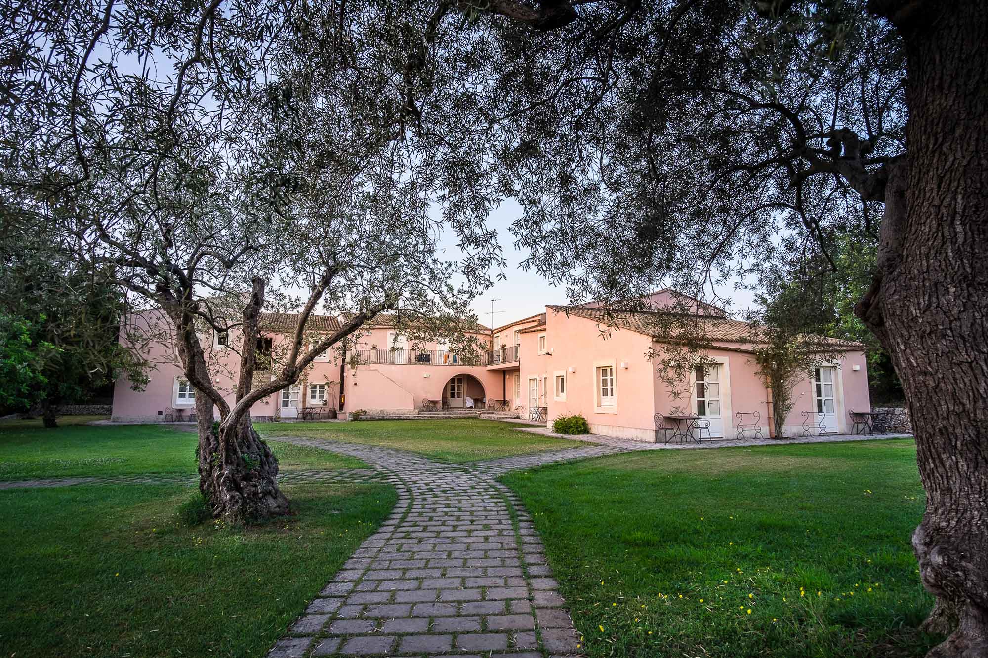 The 19th-century farmhouse is built around a baglio (courtyard), with an old olive tree providing shade. The reception, restaurant and breakfast room are off this central space, with the accommodation in newly built blocks across the lawn. Modern edges are softened by the dusky pink colour of the walls and the jasmine, honeysuckle and rose plants climbing up the sides. Across the lawn is the beautiful infinity pool: semi-circular and surrounded by sun loungers shaded by olive trees. Simple, comfy rooms have high beamed ceilings; some are triples, which will suit families. But it's the setting which makes it: you're in the depths of nature, with Sicily's most spectacular river gorge and one of her loveliest Baroque towns both on your doorstep.