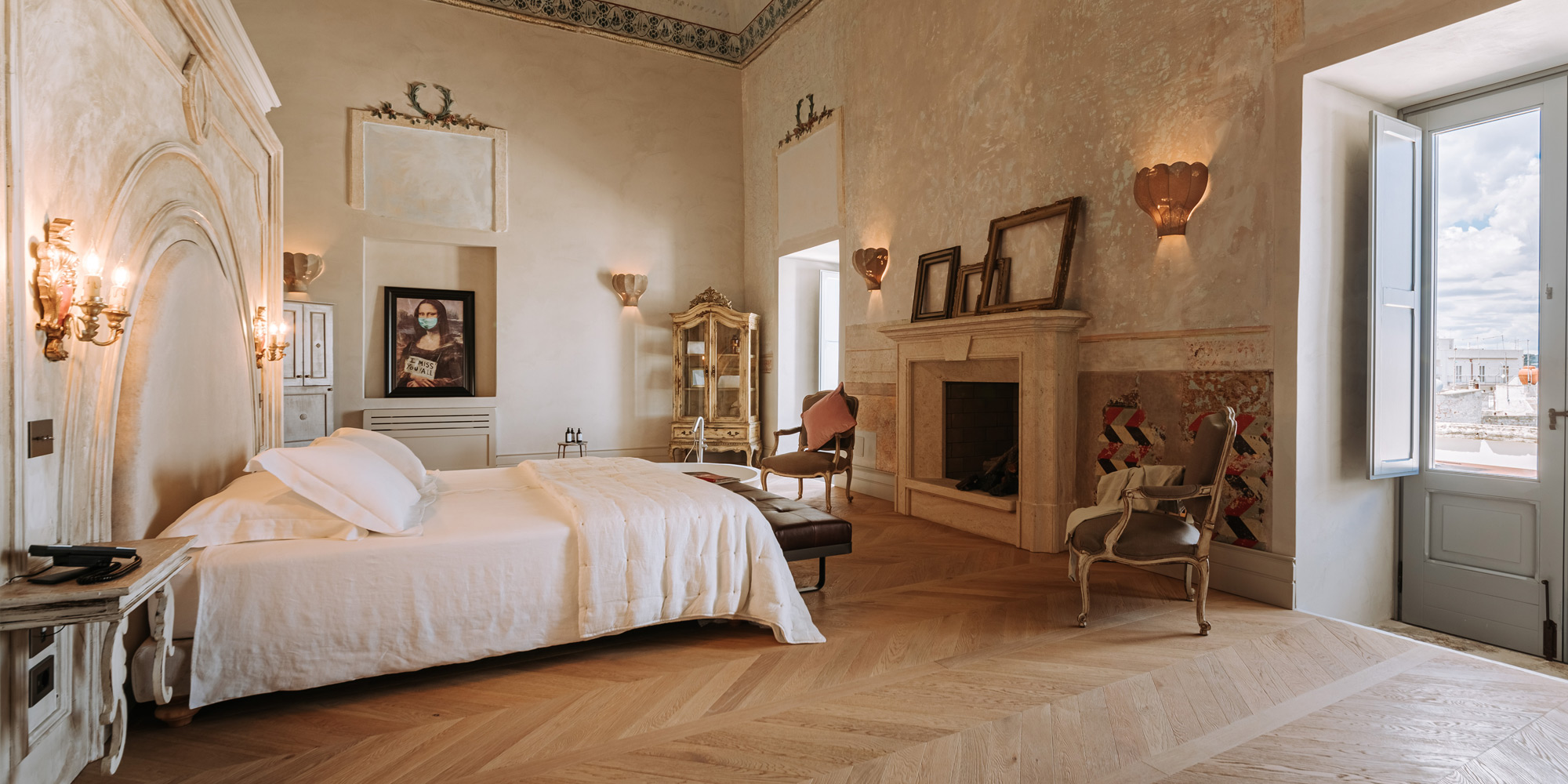The Palazzo Rosso (Red Palace) had been dormant for decades until new Swiss owners realised its extraordinary potential. Interiors were transformed with an assured blend of old and new art, bespoke furniture (such as gazebos and braziers turned into bathtubs) and sophisticated light fixtures. 15 sumptuous suites have original frescoes, huge fireplaces, multicultural antiques and contemporary bathrooms. The ancient water cistern was cleverly reinvented as an underground spa, while the vaulted former oil mill now serves refined local fare in restaurant 700. Enjoy regional wines and excellent cocktails at the 8-metre-long stone counter in the stylish bar, or dine al fresco beside the supremely elegant 15-metre swimming pool. A true paragon of beauty.