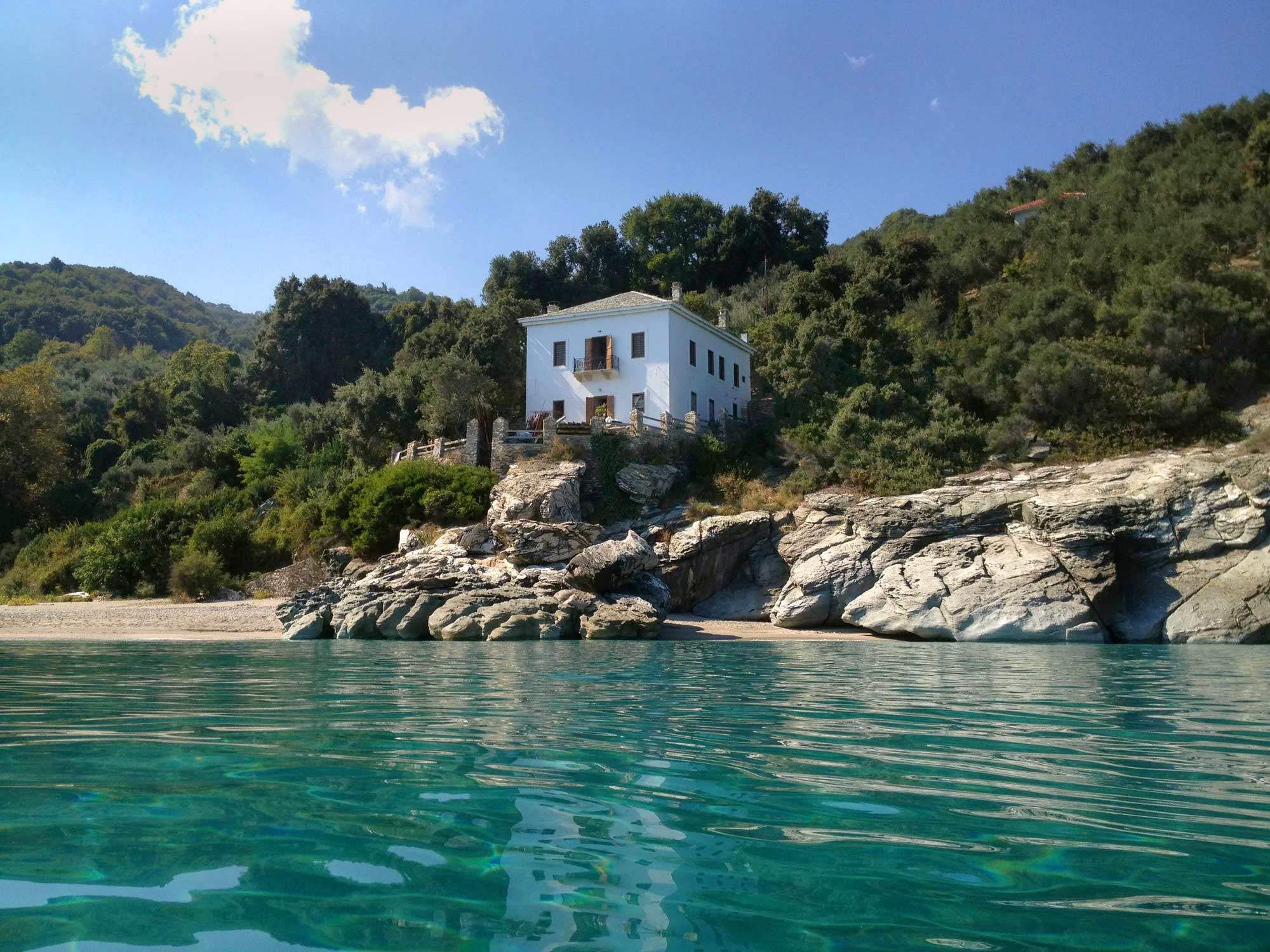 The two-storey, slate-roofed mansion is not luxurious in the 21st-century sense - there's no pool or air-con, for example - but it has charm and history in spades (and WiFi). It was built in 1905 by Egyptian stonemasons for a local trading family who had moved to Alexandria, but who wanted to keep a summer base in their homeland. With airy and elegant reception rooms - kept cool by thick walls and shuttered windows on three sides - and no fewer than four bedrooms upstairs, it was always impressive, even in this wealthy corner of mainland Greece. On the rocky promontory outside, they built a terrace - now a perfect spot for sundowners and al fresco dinners using fresh local produce.