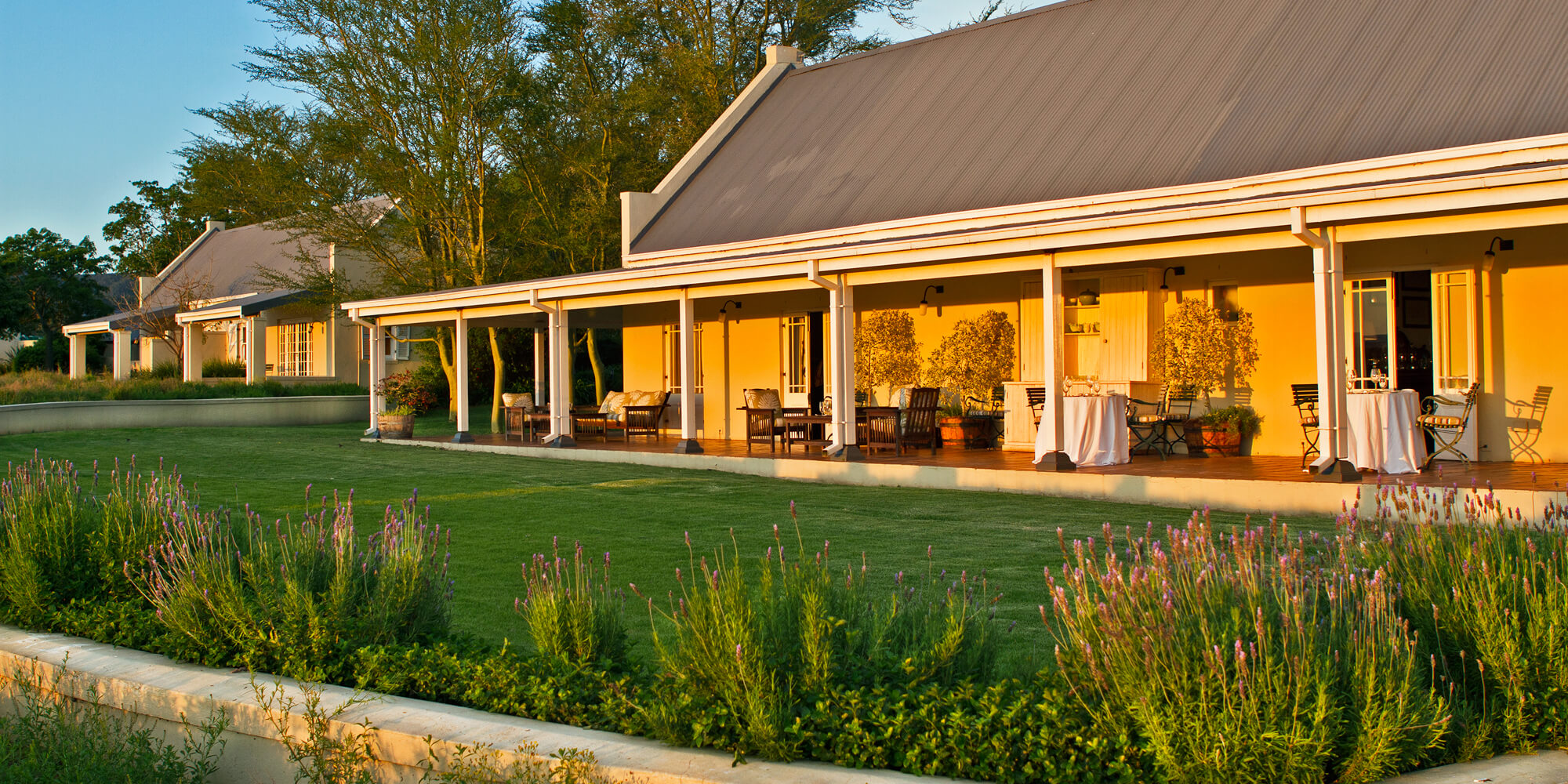 Set in lush colourful gardens with countless butterflies, this Victorian homestead has just 8 suites. With its bright floral décor it offers a light, gentle and refreshingly different way to experience African wildlife. Within viewing distance of the nearby waterhole, yet entirely fenced in, RiverBend makes for a safe and peaceful stay in the bush. Nearby Long Hope Villa and Pepper Grove House offer more private experiences thanks to their location in a secluded area of the park. Guests of Long Hope Villa are provided with a personal chef and their own game ranger.