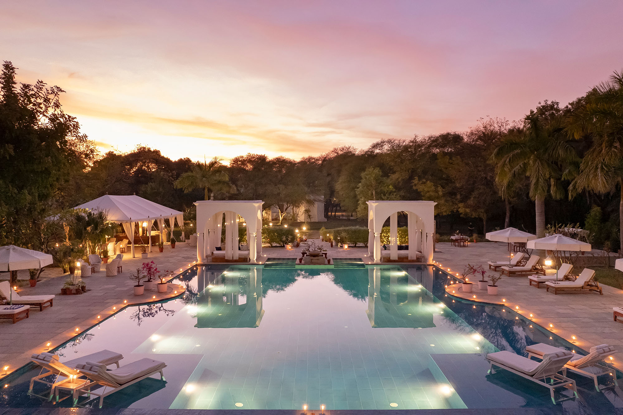 - More Ibizan villa than rural Rajasthan, a heated azure pool is surrounded by daybeds with billowing white curtains