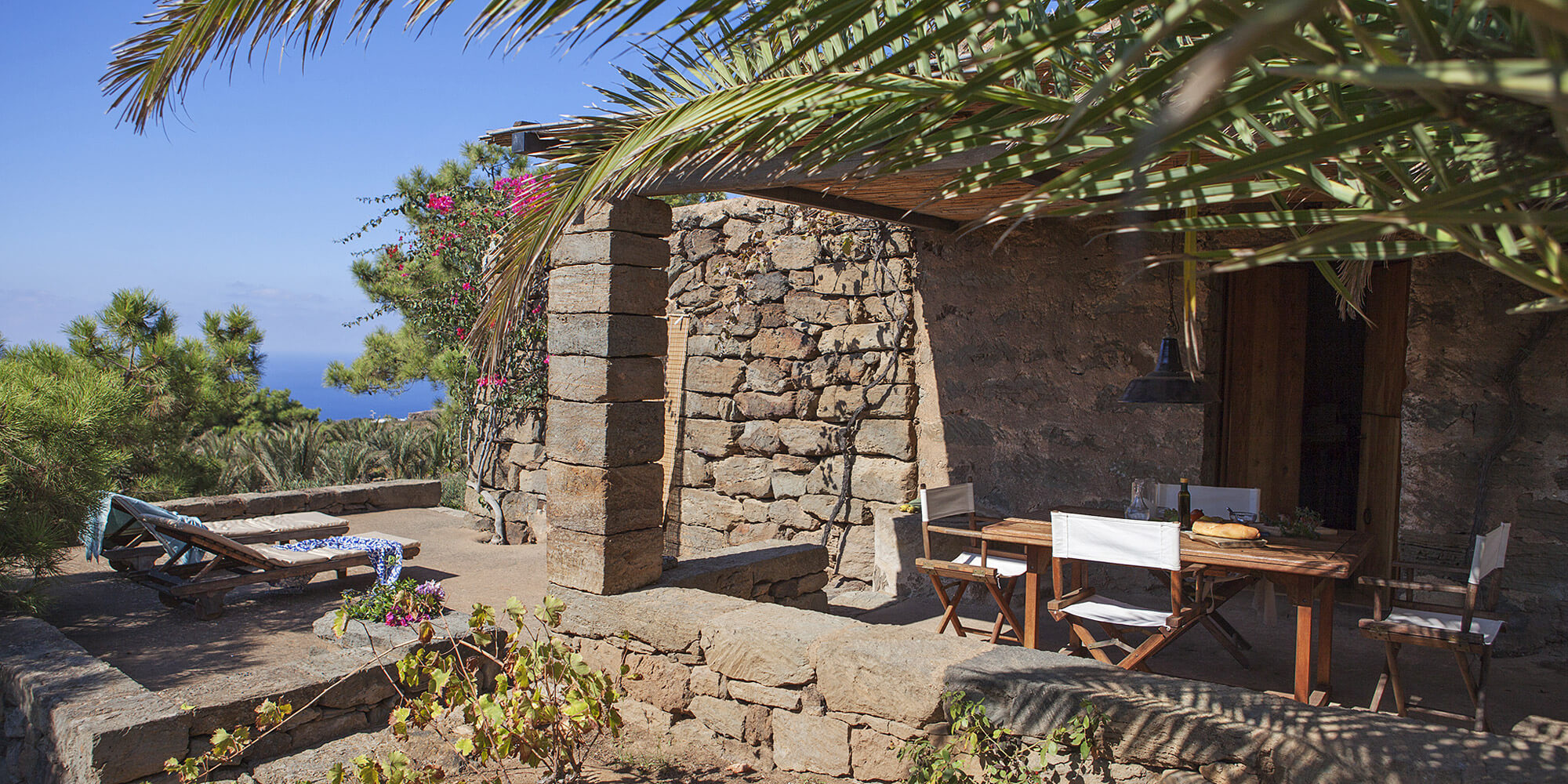 On a fertile hillside overlooking the sea, the 7 dammusi are typical of 10th-century Pantelleria island architecture. Extra-thick walls of volcanic stone provide effective insulation from the hostile climate, while gently undulating cupolas are cleverly engineered to capture precious rainwater.
