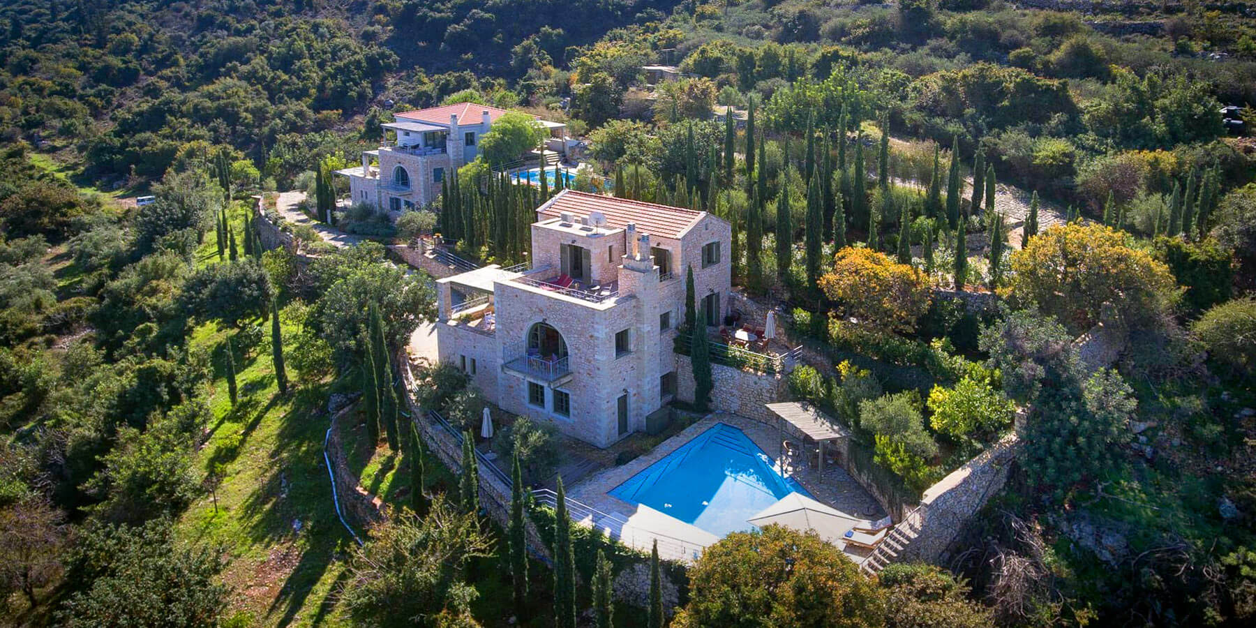 The Olive Grove Estate is just outside the village of Gavalohori, in the Apokoronas region of Crete. It overlooks Crete’s north coast, 5km from the beach at Almirida, 27km east of Chania and 45km west of Rethymno.