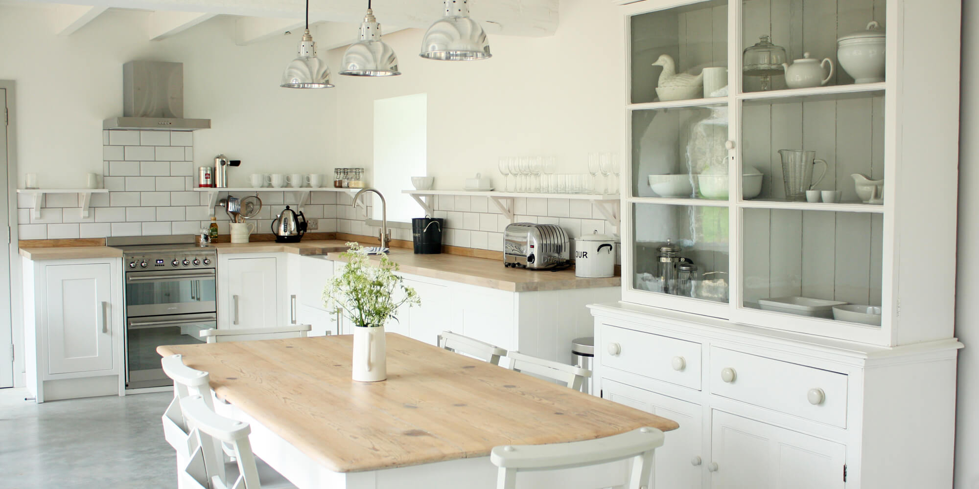 Each cottage has a stunning, amazingly equipped kitchen - no scrambling around looking for a decent bread knife here. Expect a full quota of cutlery, crockery, glassware and cooking utensils - we even spotted mixing bowls. Again, modern and traditional elements have been beautifully merged. A Belfast sink and wooden surfaces sit atop sleek white cupboards, and there's plenty of high-spec equipment: a Smeg cooker, dishwasher and Dualit toaster and kettle. Ecover products (washing-up liquid, dishwasher tablets etc) are hidden under the sink.